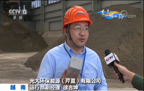 黎氏翘妆刚刚扔掉的椰子壳被装入垃圾转运车后,和其他的生活垃圾送入当地的垃圾焚烧发电厂,开始了一段奇妙的旅程。 (光大越南芹苴生活垃圾焚烧发电项目) 央视记者 周洋:您好,打扰您工作了,能给我们介绍一下您现在的工作吗?