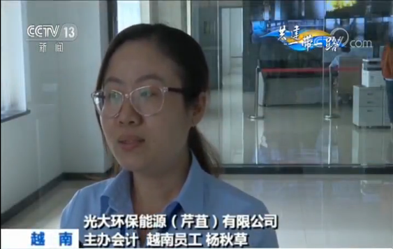 光大环保能源(芹苴)有限公司主办会计 越南员工 杨秋草:我现在可以和中国籍员工沟通,可以发挥我自己的中文水平。