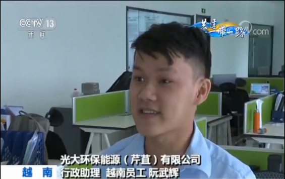 光大环保能源(芹苴)有限公司行政助理 越南员工 阮武辉:我觉得在这里工作是很开心的,也是一个很好的机会。